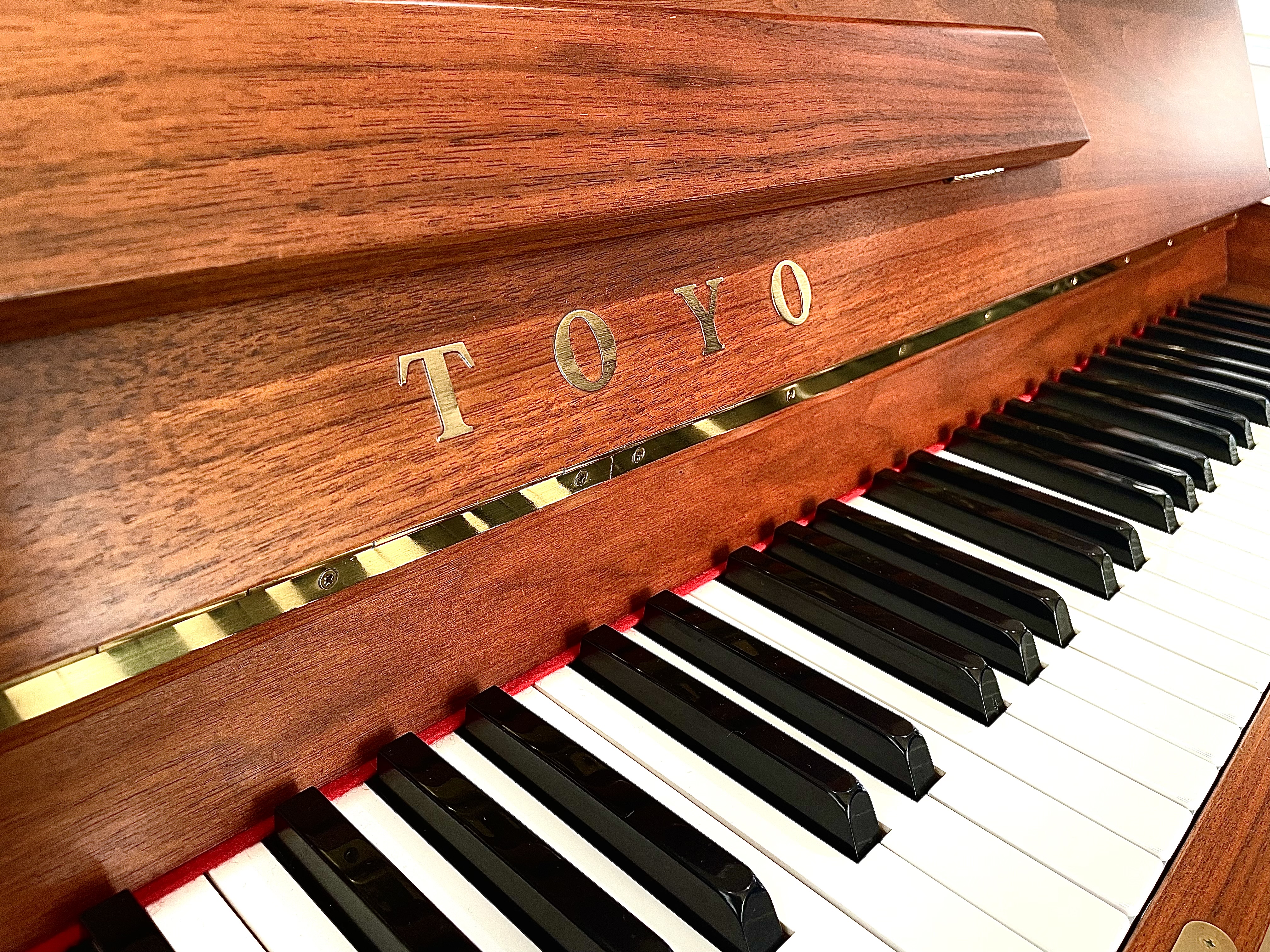 Toyo est une marque basée à Hamamatsu, fief de Yamaha et Kawai et des plus belles productions nippones d’instruments de musique. Cette production résolument tournée vers le haut laisse apparaître bien des atouts techniques et esthétiques. La sonorité est ample et bien équilibrée, le toucher est ferme et permet de nuancer sans difficulté tant les registres sont accessibles avec aisance. La somptueuse finition du meuble en noyer teinté est une vraie réussite d’élégance et de savoir faire.